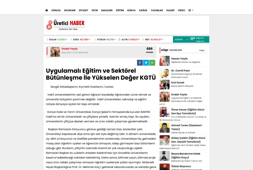 Konya Gıda ve Tarım Üniversitesi (KGTÜ), Başkan Ramazan Erkoyuncu'nun göreve geldiği 2021 yılının son çeyreğinden itibaren, temel misyonu olan tarım ve gıdada ihtisaslaşma hedefine daha odaklanmış ve sistematik adımlarla ilerliyor. Bu dönem, üniversitenin sadece akademik yayın sayısını değil, aynı zamanda öğrenci yetiştirme modelini de sektörün dinamikleriyle bütünleştiren bir dönüşüme sahne oldu.