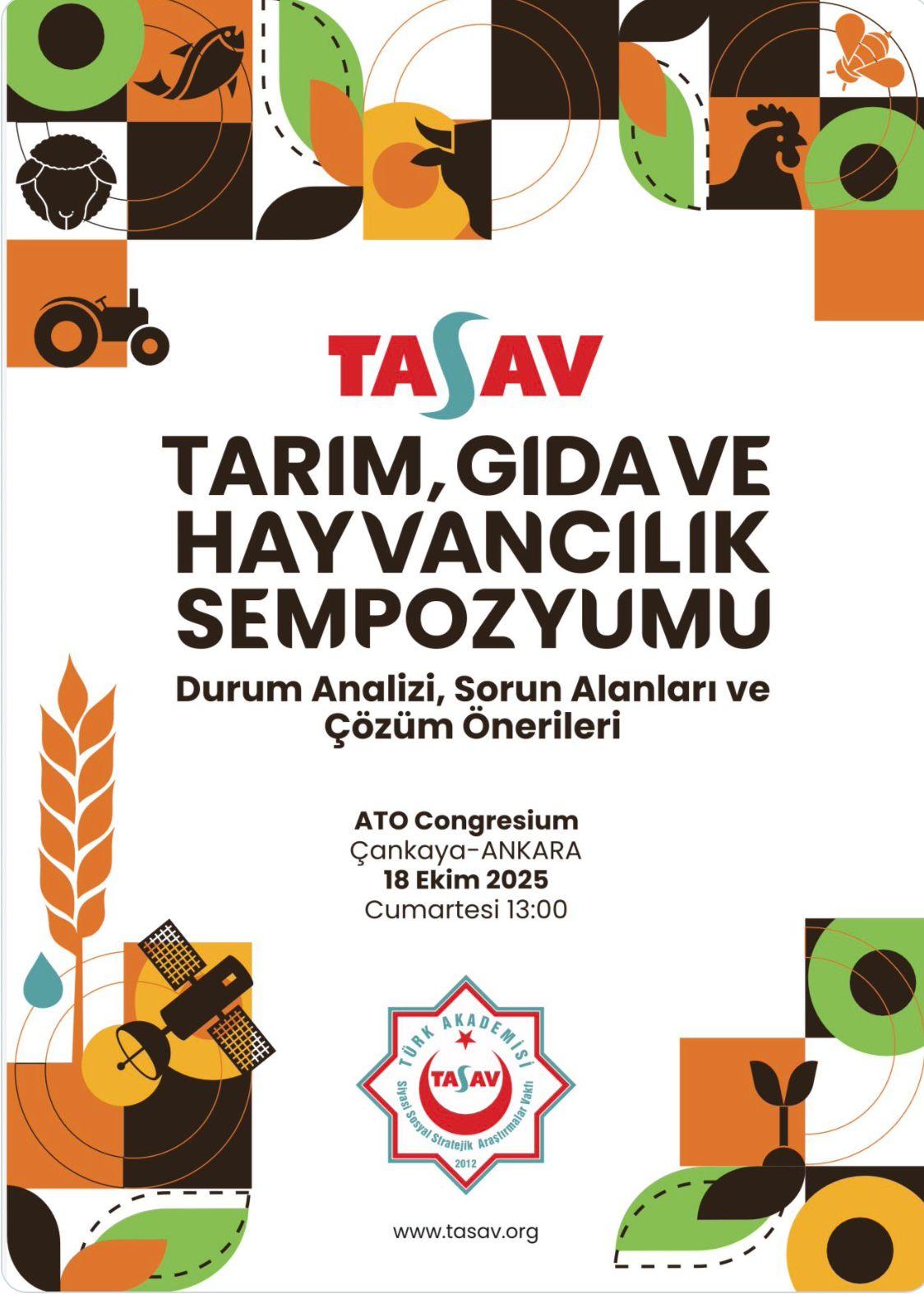 Konya Gıda ve Tarım Üniversitesi’nin katkılarıyla, Türk Akademisi Siyasi Sosyal Stratejik Araştırmalar Vakfı (TASAV) tarafından düzenlenecek olan Tarım, Gıda ve Hayvancılık Sempozyumu,