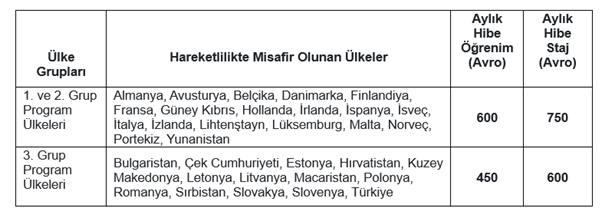 The monthly grant amounts for Erasmus+ Student Mobility for Studies are as follows: