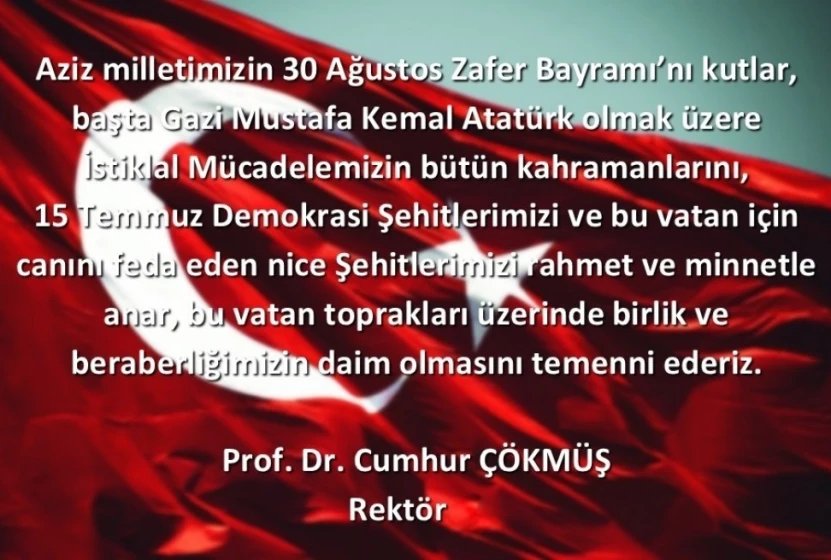 Rektörümüz Prof. Dr. Cumhur Çökmüş'ün 30 Ağustos Zafer Bayramı Mesajı