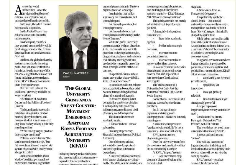 Küresel Üniversite Krizi ve Anadolu'da Ortaya Çıkan Sessiz Karşı Hareket: Konya Gıda ve Tarım Üniversitesi