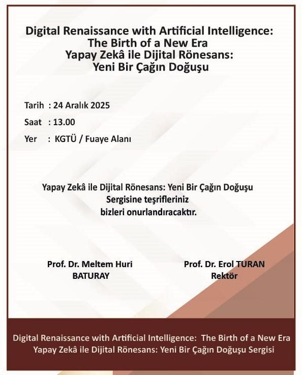 Öğrencilerimizin, bir dönem boyunca emek vererek, topladıkları verilerle tasarladıkları posterlerden oluşan Digital Renaissance with Artificial Intelligence: The Birth of a New Era (Yapay Zekâ ile Dijital Rönesans: Yeni Bir Çağın Doğuşu) isimli sergimizi 24 aralık 2025 saat 13.00'de açılışını gerçekleştiriyoruz.