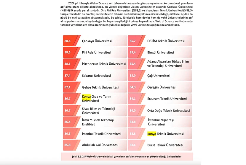 Bir üniversitenin gerçek başarısı, yalnızca yayın sayısıyla değil; ürettiği bilginin bilim dünyasında ne ölçüde karşılık bulduğuyla ölçülür. Bu anlayışın en somut göstergesi olan atıf performansında, Konya Gıda ve Tarım Üniversitesi (KGTÜ) önemli bir başarıya imza attı.