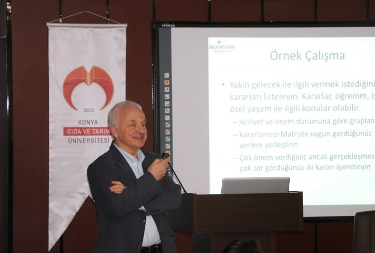 Kariyer Merkezimiz tarafından, İnovasyon Akademisi Genel Müdürü  Sayın Bahadır Akın’ın  sunumlarıyla “İş Yaşamı Kararlardan Oluşur” konulu seminer gerçekleştirildi. Söyleşi  havasında, interaktif olarak geçen etkinliğe katılan akademisyen ve öğrencilerimiz, iş hayatında karar verme süreçlerinin nasıl işlediğini, karar almada kullanılabilecek pratik yöntemleri, doğru karar vermenin kariyere etkisi  gibi başlıklarda bilgi edinme imkanı buldular. Seminer sonunda, Rektör Yardımcımız Prof. Dr. Durmuş Tayyar Şen tarafından konuşmacımız Sayın Bahadır Akın’a plaket takdim edilmiştir.