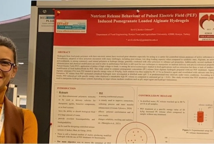 Gıda Mühendisliği Bölümümüzden Dr. Öğr. Üyesi Sevil Çıkrıkçı Erünsal İsviçre, Lozan’da Agroscope, Bühler Group, EPFL, ETH Zürich and Nestlé tarafından düzenlenen “35th EFFoST International Conference: Healthy Individuals, Resilient Communities, and Global Food Security” kongresine katıldı. 1-4 Kasım 2021 tarihleri arasında gerçekleşen etkinlikte Prof. Dr. Sencer Buzrul’un da destek vermiş olduğu “Nutrient release behaviour of Pulsed Electric Field (PEF)-induced pomegranate loaded alginate hydrogels” başlıklı çalışma sergilendi.