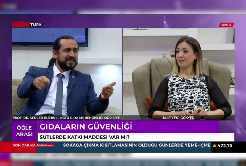 Gıda Mühendisliği Bölümü öğretim üyemiz Prof. Dr. Sencer Buzrul, 27 Nisan 2021 tarihinde BBN Türk kanalında canlı yayına katıldı. “Öğle Arası” programında gıda güvenliği başlığı altında Jale Yeni Gökyer’in farklı sorularını cevaplayan Buzrul, çiğ süt tüketiminin riskleri, pastörize süt ile UHT süt arasındaki farklar ve gıda katkı maddeleri gibi konularda görüşlerini belirtti. Prof. Dr. Sencer Buzrul programda ayrıca, paketlenmiş gıdaların söz edildiği gibi tehlikeli olmadığını tam tersine işini düzgün yapan firmaların ürünlerinin güvenle tüketilebileceğinin altını çizdi.