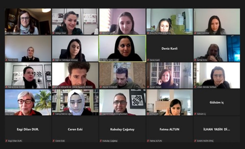 Doç. Dr. Rabia Köse Doğan ve Arş. Gör. Gökçe Onur Karabulut’un yürütücülüğünü yaptığı atölyeye üniversitemiz ikinci ve üçüncü sınıf İç Mimarlık bölümü öğrencileri yüz yüze katılım sağlarken, farklı üniversitelerden öğrenciler online katılım sağlamıştır. Çalıştay sonunda tasarlanan afiş çalışmaları detaylı olarak sunulmuştur.
