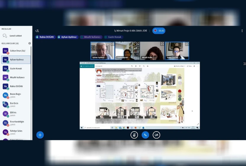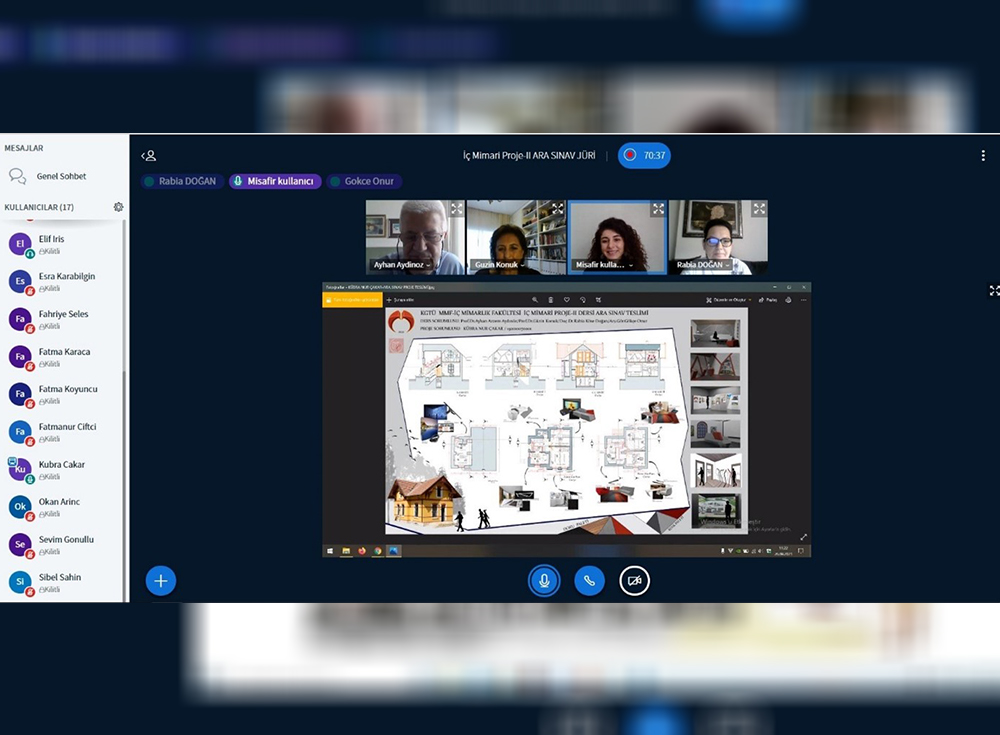 Üniversitemiz Mühendislik ve Mimarlık Fakültesi İç Mimarlık Bölümü IMB2000 İç Mimari Proje-II dersi kapsamında gerçekleştirilen ara sınav jürisi, üniversitemiz uzaktan eğitim sistemi üzerinden 26 Nisan 2021 günü gerçekleştirildi. Jüri, ders sorumluları ve Yüksek İç Mimar Halime Ceylan Özdemir’in de katkılarıyla tamamlanırken, proje kapsamında Konya Gar Evleri’ne yeni bir işlev yüklenerek “Konya Gıda ve Tarım Üniversitesi Tanıtım Ofisi” olarak projelendirilmesi hedeflenmiştir.