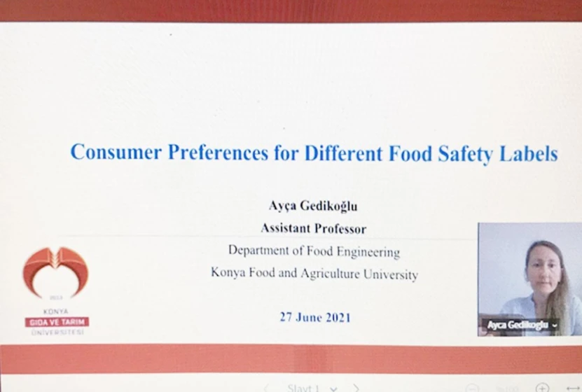 Gıda Mühendisliği Bölümü öğretim üyemiz ve Mühendislik ve Mimarlık Fakültesi Dekan Yardımcımız Dr. Öğr. Üyesi Ayça Gedikoğlu, 27 Haziran Pazar günü 4. Uluslararası GAP Gıda, Tarım ve Veteriner Bilimleri Kongresinde online olarak “Consumer Preferences for Different Food Safety Labels” başlıklı bir sunum gerçekleştirdi.