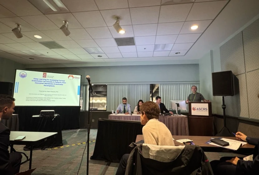 Üniversitemiz Bilgisayar Mühendisliği öğretim üyelerinden Prof. Dr. Kasım Öztoprak, 25-28 Nisan 2025 tarihleri arasında Amerika Birleşik Devletlerinin Los Angeles kentinde düzenlenen American Society of Cataract and Refractive Surgery (ASCRS) yıllık toplantısında "Deep Learning for Assessing Corneal Endothelial Cell Density in Patients After Descemet Membrane Endothelial Keratoplasty" başlıklı önemli bir sunum gerçekleştirmiştir.