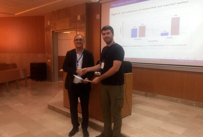 Sosyal ve Beşeri Bilimler Fakültesi Ekonomi Bölümü Araştırma Görevlimiz Mustafa Özsarı, 17-18 Ekim 2019 tarihleri arasında Adana'da düzenlenen 20. Ulusal İktisat Sempozyumu'na katıldı. Mustafa Özsarı konferansta Doç. Dr. Yılmaz Kılıçaslan ile birlikte hazırladıkları "İngilizce Dilde Eğitimin Üniversite Mezunlarının İş Tatminleri Üzerindeki Etkisi" başlıklı çalışma ile ilgili sözlü sunum gerçekleştirdi.