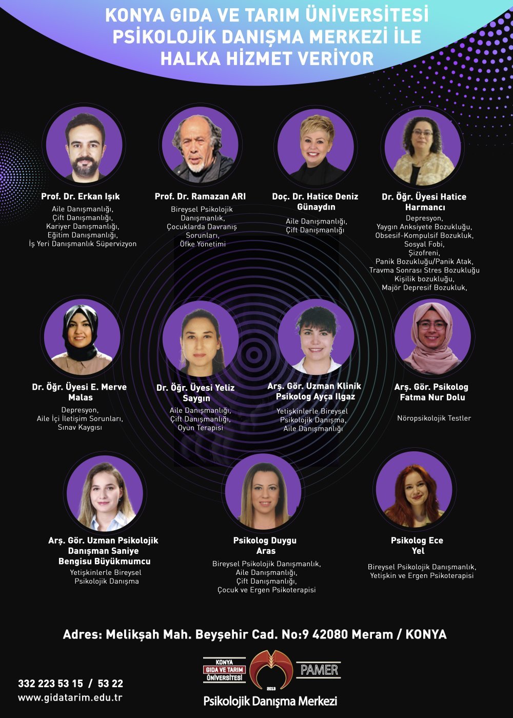 Konya Gıda ve Tarım Üniversitesi, şehir sakinlerine yönelik önemli bir adım atmış durumda. Psikoloji Uygulama ve Araştırma Merkezi (PAMER) adıyla faaliyet gösteren merkez, güçlü akademik kadrosuyla vatandaşlara destek oluyor.