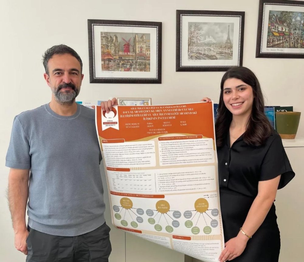 KGTÜ Psikoloji Bölümü 4. sınıf öğrencileri, PSKO 4001/4002 Mezuniyet Projesi dersi kapsamında hazırladıkları bitirme tezlerini merkez bina fuaye alanında poster sunumu şeklinde sergilediler. Öğrencilerin yıl boyunca yürüttükleri bilimsel araştırmaların yer aldığı etkinlik, KGTÜ Rektörü Prof. Dr. Erol Turan tarafından ziyaret edildi. Rektör Turan, öğrencilerin tez çalışmalarını yakından inceleyerek kendilerini tebrik etti.