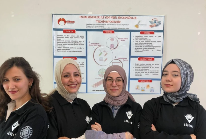 Moleküler Biyoloji ve Genetik Bölümü ve Biyoteknoloji Anabilim Dalı öğretim üyesi Doç. Dr. Gülcihan Gülseren danışmanlığında, doktora öğrencileri Zeynep Demirsoy, Fatmanur Elif Sara, Merve Şeker ve İrem Beyza Calla’dan oluşan Konya Gıda ve Teknoloji Üniversitesi ekibi, "Enzim mimikleri ile yeni nesil biyosensörler: tirozin biyosensörübu" adlı projeyle ile Türkiye ikincisi oldu.