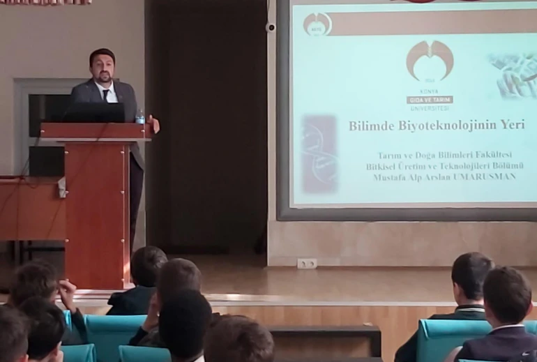 Bitkisel Üretim ve Teknolojileri Bölümü Araştırma Görevlimiz Mustafa Alp Arslan Umarusman Ortaokul Öğrencileri için Biyoteknoloji Konulu Seminer Verdi