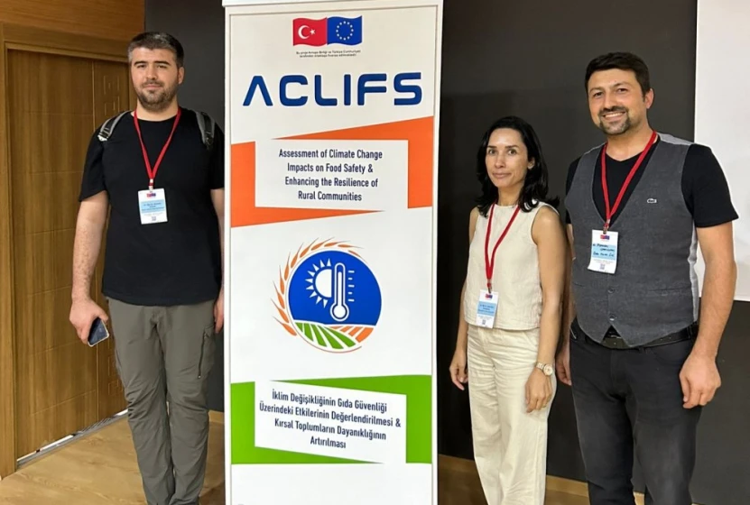 Çevre, Şehircilik ve İklim Değişikliği Bakanlığı, İklim Değişikliğine Uyum Hibe Programı kapsamında desteklenen ve TÜBİTAK Marmara Araştırma Merkezi koordinatörlüğünde yürütülmekte olan "İklim Değişikliğinin Gıda Güvenliği Üzerindeki Etkilerinin Değerlendirilmesi ve Kırsal Toplumların Dayanıklılığının Artırılması" projesi kapsamında 9 Temmuz 2024 tarihinde Isparta Eğirdir Meyvecilik Araştırma Enstitüsü'nde gerçekleştirilen, ülkemizde iklim değişikliğinin tarımsal üretim ve gıda güvenliğine doğrudan ve dolaylı etkilerinin agronomik ve ekonomik etkileri ele alınmıştır. Çalıştaya katılım gösteren öğretim üyelerimiz, günümüzde tarımsal üretimin karşı karşıya olduğu en büyük tehdidin iklim değişikliği olduğunu vurgulamışlar ve Konya Gıda ve Tarım Üniversitesi ile Konya Şeker iş birliğinde gerçekleştirilen iklim değişikliğine karşı mücadele kapsamında yapılan çalışmalar hakkında bilgiler paylaşmışlardır.